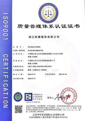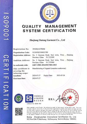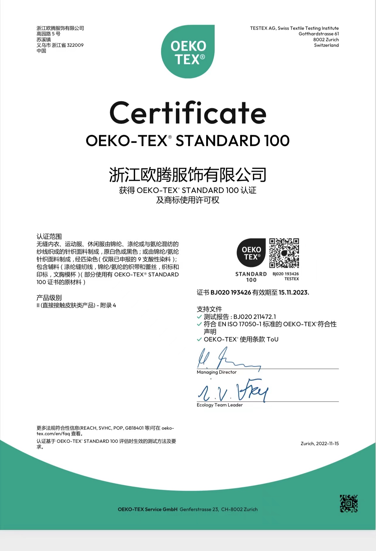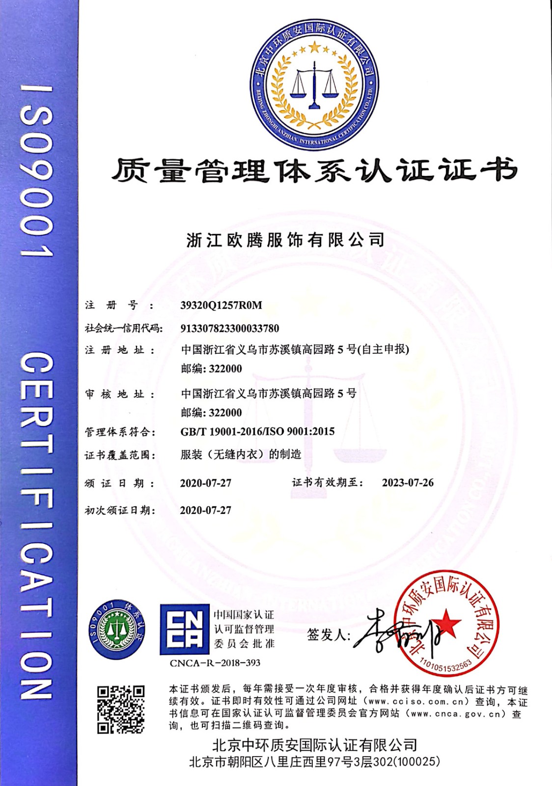 浙江歐騰服飾有限公司位于世界小商品之都-義烏。創(chuàng)立于2015年,是一家專業(yè)生產(chǎn)無縫針織運(yùn)動(dòng)服飾和內(nèi)衣的工貿(mào)一體企業(yè),擁有自主出口權(quán)。 工廠的占地面積約16000平方米 ,引進(jìn)了大型圣東尼、高騰等多種先進(jìn)的制衣設(shè)備300余臺(tái)。月產(chǎn)能可達(dá)90萬件。 歐騰服飾每年投入近百萬資金打樣開發(fā)新產(chǎn)品,有著一支高素質(zhì)設(shè)計(jì)、技術(shù)員工隊(duì)伍。工廠先后通過了ISO 9001質(zhì)量管理體系認(rèn)證、BSCI認(rèn)證、GRS認(rèn)證、OEKO-TEX國際生態(tài)紡織品認(rèn)證等多項(xiàng)專利檢測報(bào)告。可提供OEM&ODM服務(wù)。歐騰服飾以一套完整、科學(xué)的質(zhì)量管理體系,生產(chǎn)的服裝從原材料紗線到成衣,質(zhì)量完全能夠滿足國內(nèi)、國際質(zhì)量要求。獲得了客戶一致好評。工廠先后獲得省科技型企業(yè)、國家高新企業(yè)、義烏市誠信講信用單位、規(guī)上企業(yè)、信用AAA級(jí)等榮譽(yù)。